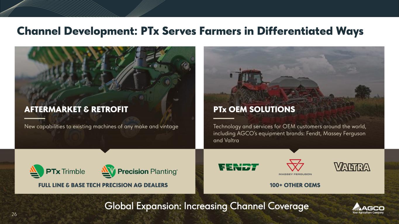 渠道发展:PTX以差异化方式为农民提供服务Aftermarket & RETROFIT新能力到现有任何品牌和年份的机器为全球OEM客户提供的PTX OEM解决方案技术和服务,包括AGCO的设备品牌:Fendt、Massey Ferguson和Valtra 100 +其他OEM 26全球扩张:增加渠道覆盖FULL LINE & BASE TECH PRECISION AG经销商
