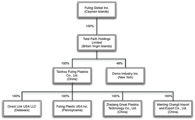 | ● | Taizhou Fuling Plastics Co., Ltd., a PRC company (“Taizhou Fuling”), which is a wholly owned subsidiary of Total Faith; | |