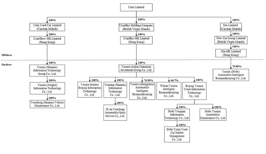 优信有限公司不是一家中国运营公司,而是一家开曼群岛控股公司,其业务主要由其中国子公司进行,并且在历史上是通过与中国前VIE的合同安排进行的。中国法律法规对外商投资增值电信服务进行限制和附加条件。为遵守中国监管规定,过去我们主要通过友信互联(北京)信息技术有限公司或友信沪联,以及友信易手车(北京)信息技术有限公司或易手车在中国经营这些业务,我们在本招股说明书中将其称为前VIE。我们的中国子公司、前VIE及其股东之间存在历史合同安排,已于2022年3月31日有效终止。由于合同安排,我们能够指导前VIE的活动并从中获得经济利益,并且根据财务会计准则委员会(“FASB ASC 810”)下的会计准则条件主题810,出于会计目的,我们被视为前VIE的主要受益者。因此,我们根据美国公认会计原则在合并财务报表中合并了前VIE的财务业绩。除美国公认会计原则下定义的以外,通过与前VIE的合同安排,优信有限公司及其投资者都没有在前VIE中拥有股权、直接外国投资或控制。合同安排并不等同于对前VIE及其在中国的子公司的业务拥有股权。本招股章程所用“我们”、“我们”、“我们公司”或“我们的”是指优信有限公司及其附属公司。我们ADS的投资者购买的不是我们在中国的子公司或前VIE的股权,而是在购买一家在开曼群岛注册成立的控股公司,即优信有限公司的股权。