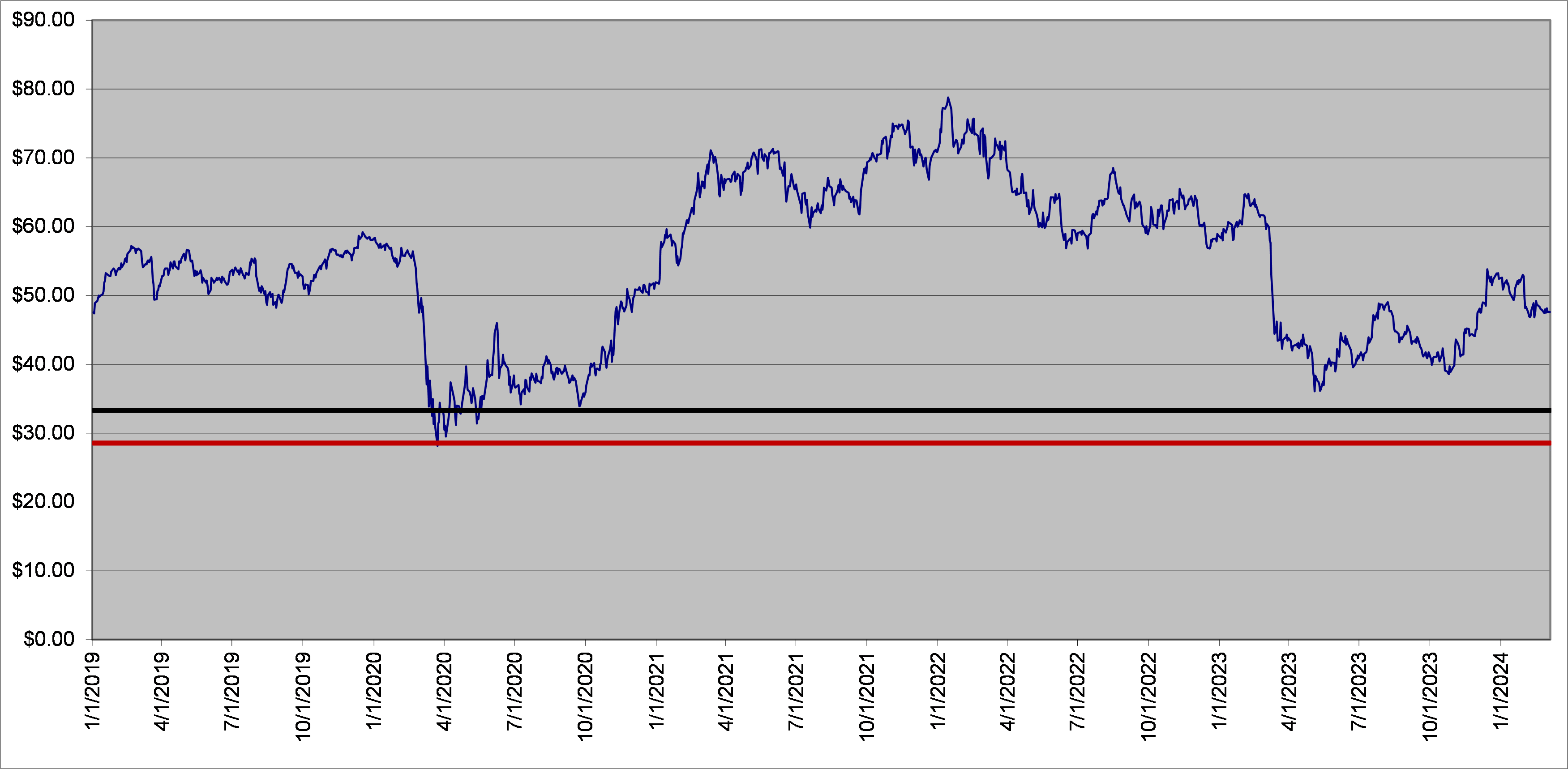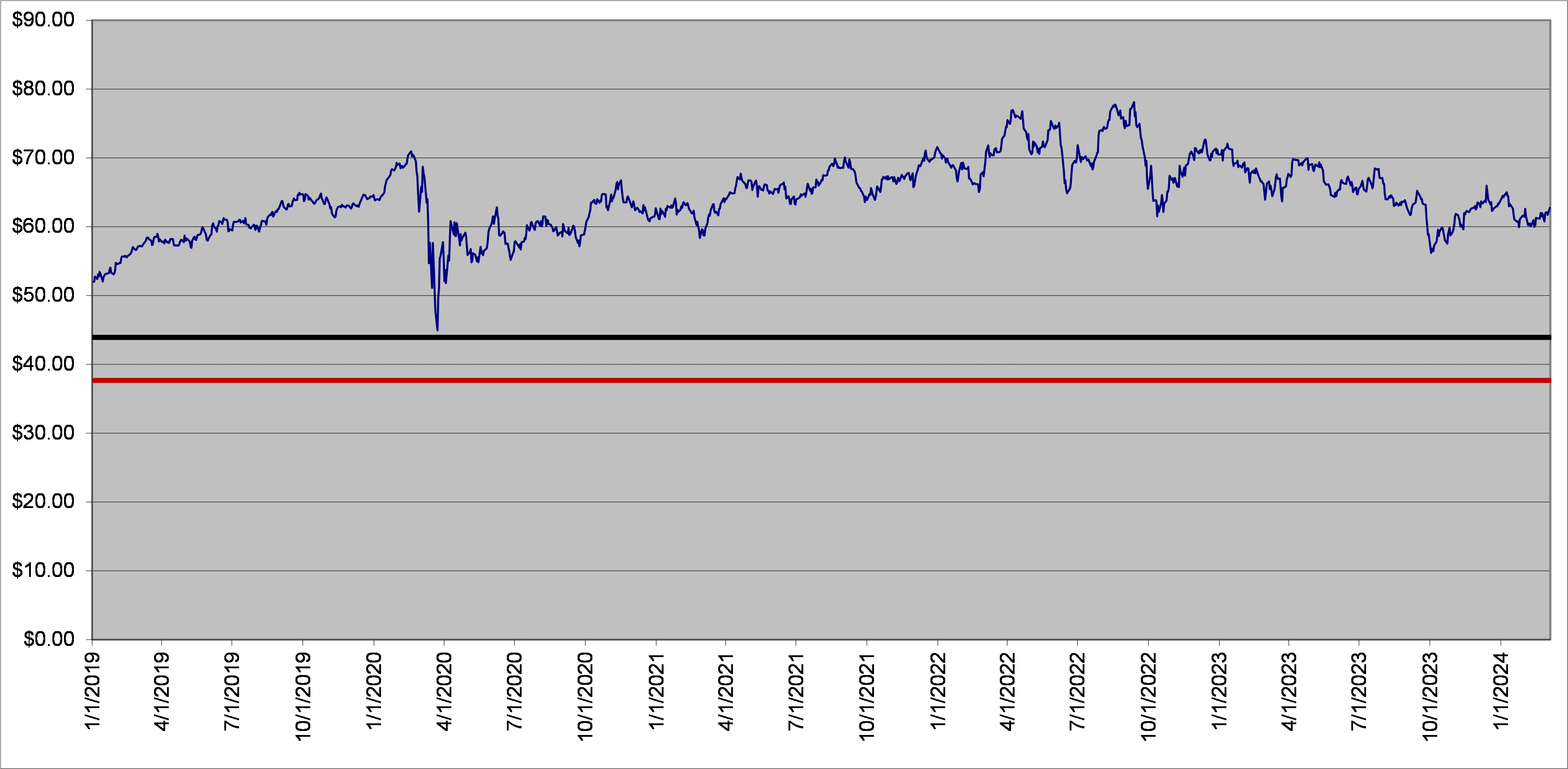 相对于NDX指数:,是其初始水平的60% 关于KRE股票:$,这是其初始水平的60% 关于XLU股价:$,这是其初始水平的60% |