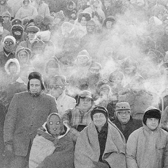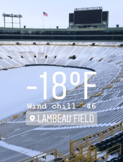 1967年12月31日我起床时,一条北极锋已经把我们吹得刮风了(注意旗帜)-18oF天气当天与达拉斯牛仔队的NFL锦标赛,后来被称为冰碗。在这样的温度下,球迷们的呼吸立刻凝固成了悬在兰博球场上空的冰云。