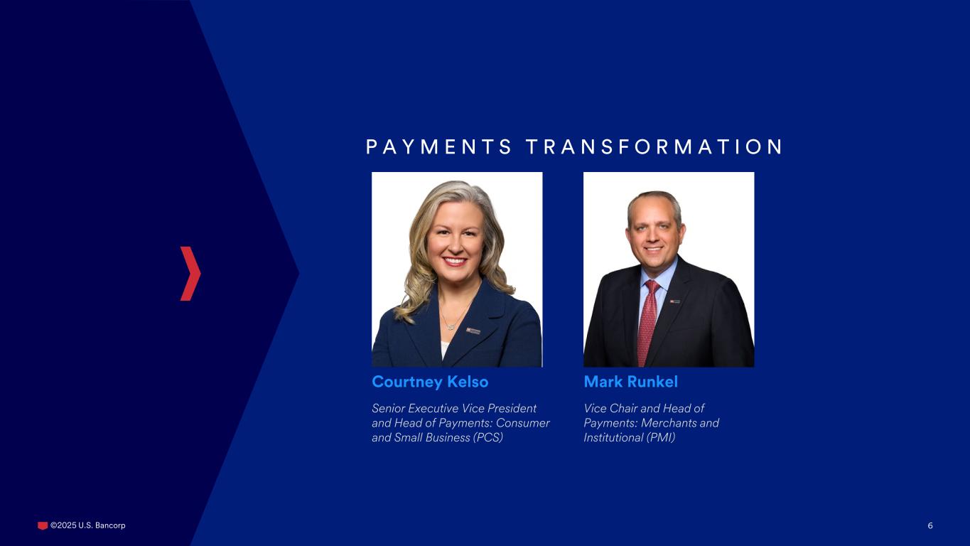 ©2025 美国合众银行 6 P A Y M E N T S T R A N S F O R M A T I O N Mark Runkel副主席兼支付主管:商家和机构(PMI)Courtney Kelso高级执行副总裁兼支付主管:消费者和小型企业(PCS)