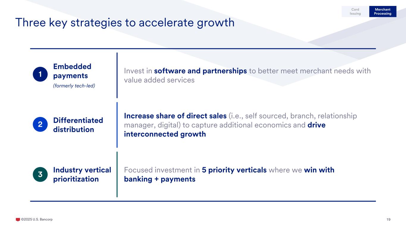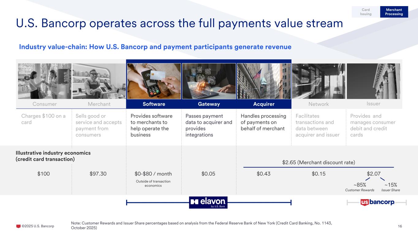 ©2025 美国合众银行 20款嵌入式支付(以前由技术主导)嵌入式支付将支付能力集成到自有和合作的软件中;以约4倍的核心收单增长2019年第三季度2025年年初至今20% 34% Payments总收入的百分比每年2-3 %的组合变化1。现代全渠道支付网关(Elavon Payment Gateway,简称EPG)2。下一代API 3的扩展套件。软件主导的解决方案4。为我们的客户提供嵌入式客户端解决方案(业务要点)5。Agentic Commerce 5项关键举措嵌入式支付收入1发卡商户处理