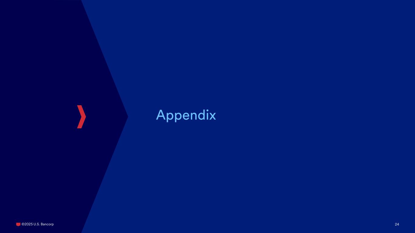 ©2025 美国合众银行 23我们正在执行一项战略,以加速增长并保持有吸引力的利润率嵌入式支付差异化分销行业垂直优先商家处理费收入同比变化3.0% 3Q24 2.4% 4Q24 3.5% 1Q25 4.4% 2Q25 5.2% 3Q25最近的势头让我们对未来的道路充满信心发卡商家处理