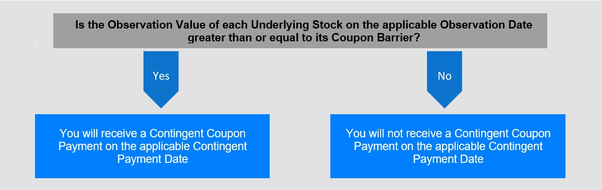 •假设票据未被赎回,每只标的股票在适用观察日的观察值大于或等于其起始值的60.00%,则按月支付或有票息。在相关或有支付日(如适用)应付票据本金金额为1,000.00美元的每一张息票将等于(i)截至相关或有支付日(包括相关或有支付日)已发生的或有支付日数目的16.042美元乘积减去(ii)先前支付的所有或有支付息票的总和。