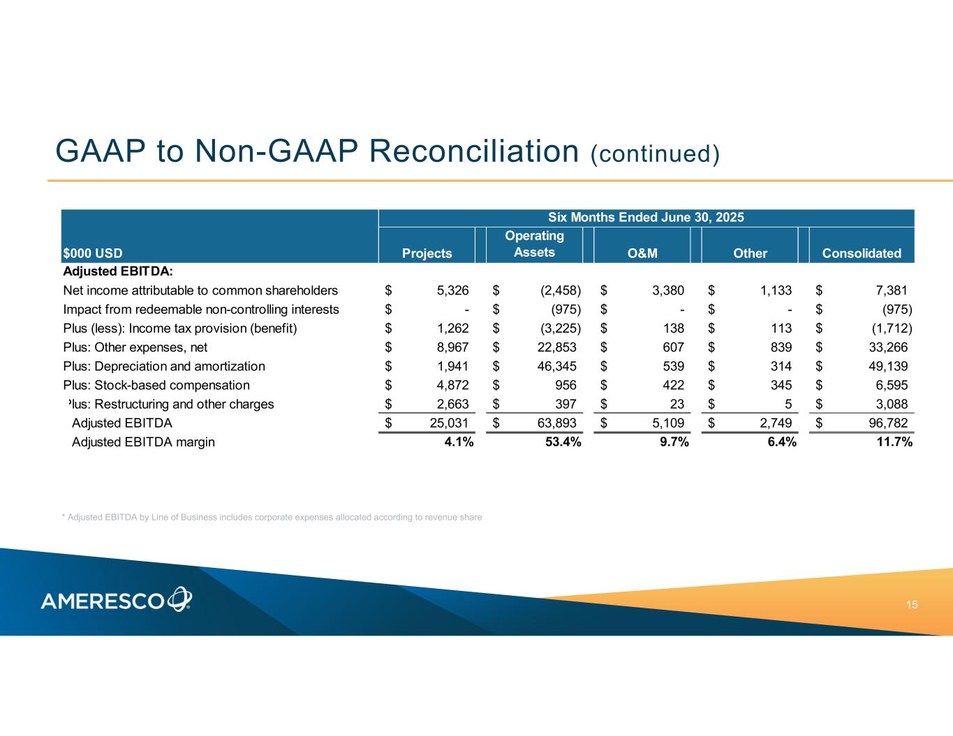 ©2025 Ameresco, Inc.版权所有。ameResco.com Q2 2025补充资料2025年8月4日