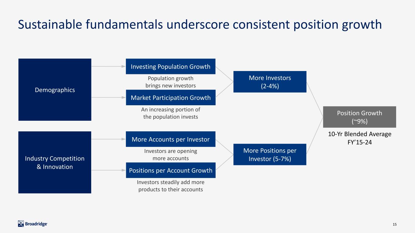 14我们拥有独特的网络和商业模式…监管机构和行业协会经纪自营商和财富管理公司投资者公众公司和基金10,000 +公司发行人1,000 +银行和经纪自营商30,000 +共同基金和ETF 20万+财务顾问15万+机构股东2亿+零售股东账户