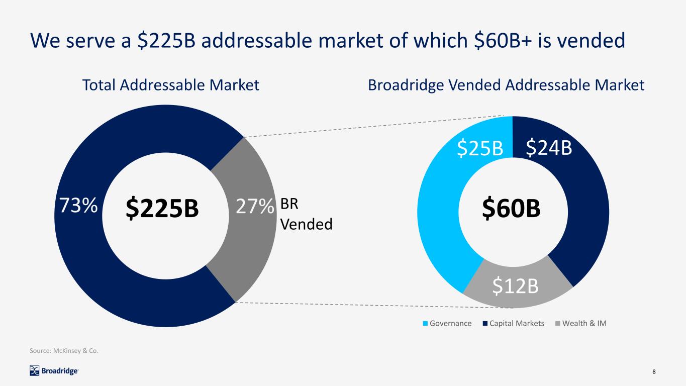 8我们服务于一个$ 225B的可寻址市场,其中$ 60B +被出售来源:麦肯锡治理资本市场财富& IM $ 25B $ 24B Broadridge vended可寻址市场27% 73%总可寻址市场$ 12B $ 225B $ 60BBR vended