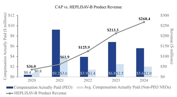 2024年,我们成功地执行了我们的战略优先事项,并兑现了我们对股东的承诺。由于我们Dynavax团队成员的辛勤工作和奉献精神,我们实现了创纪录的HEPLISAV-B®2024年产品收入2.684亿美元,较2023年增长26%,调整后EBITDA1(不包括基于股票的薪酬)5190万美元,比2023年增长329%,推进了我们的管道计划,实现了盈利,并通过我们有史以来第一个股票回购计划向我们的股东返还了资本。HEPLISAV-B在美国的估计总市场份额从上一年的42%增加到44%。我们在2024年的表现为我们在2025年取得更大成功奠定了基础,我们预计这将是Dynavax又一个标志性的一年,我们已经在实现2025年指导目标方面取得了重要进展,其中包括HEPLISAV-B净产品收入为305.0美元至3.25亿美元,调整后EBITDA至少为7500万美元。