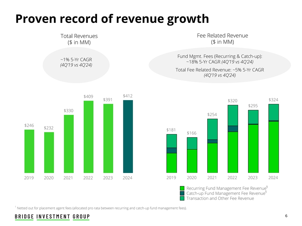 经验证的收入增长记录费用相关收入总收入($ in MM)($ in MM)Fund MGMT。费用(经常性&追赶性):~1%的5年复合年增长率~18%的5年复合年增长率(4Q‘19 vs 4Q’24)(4Q‘19 vs 4Q’24)与费用相关的总收入:~5%的5年复合年增长率(4Q‘19 vs 4Q’24)$ 412 $ 409 $ 391 $ 324 $ 320 $ 295 $ 330 $ 254 $ 246 $ 246 $ 232 $ 181 $ 166201920202020202120222023202320242019202020212022202320241经常性基金管理费收入1追赶性基金管理费收入交易和其他费用收入1净额配售代理费用(在经常性和追赶性基金管理费之间按比例分配)。6