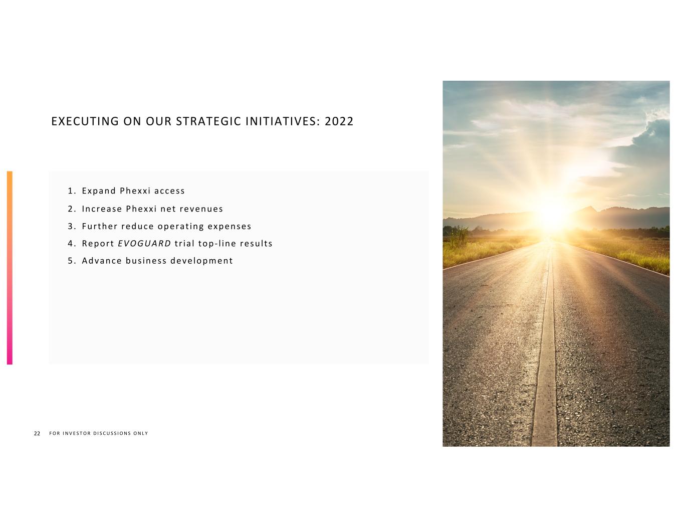 F O R I N V E S T O R D I S C U S I O N S O N L Y执行我们的战略计划:20221。EXP和d p h exx i access 2。在折痕P H EXX I N ET REVEN UES 3。在SES 4中的EXP的RTH。R EP O RT EVOGUARD T R IA L到P-L IN E RESUL TS 5。A d van ce b us in ESS deve lopm en t 22
