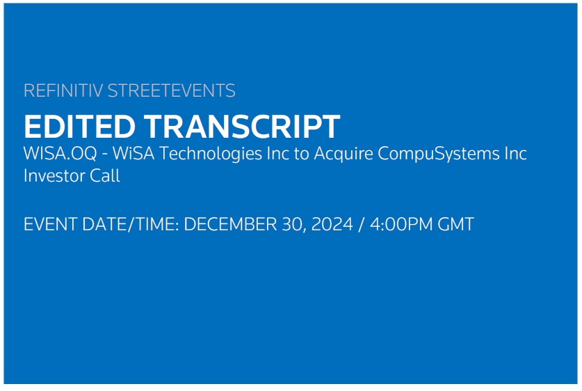 2024年12月30日/下午4:00,WISA.OQ-WiSA Technologies Inc将收购CompuSystems Inc投资者电话会议