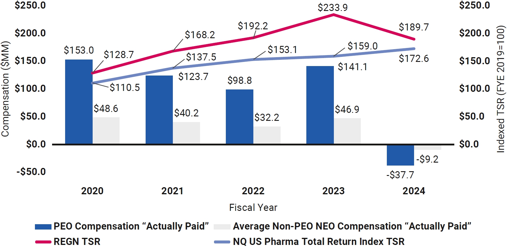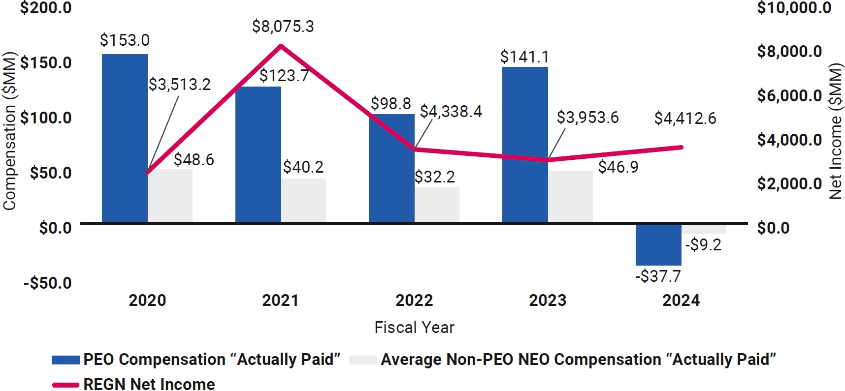 这份代理声明使用了非美国通用会计准则下的净收入和非美国通用会计准则下的每股净收入,这是不按照美国公认会计原则(“GAAP”)计算的财务指标。这些非GAAP财务指标的计算方法是从相关的GAAP财务指标中排除某些非现金和其他项目。非GAAP调整还包括调节项目的估计所得税影响。公司对公司认为对评估其经营业绩没有用处的项目进行了此类调整。例如,可能会对基于不在公司控制范围内的因素(例如股份授予日的公司股价)或与正常、经常性经营无关的项目(例如适用法律法规的变化)进行调整。管理层使用这些非GAAP衡量标准进行规划、预算编制、预测、评估历史业绩以及做出财务和运营决策,并在此基础上向投资者提供预测。此外,此类非公认会计原则措施使投资者更好地了解公司核心业务运营的财务业绩。然而,这些和其他非公认会计准则财务指标的使用存在局限性,因为它们不包括某些经常性费用。此外,该公司的非GAAP财务指标可能无法与其他公司提供的非GAAP信息进行比较。再生元制药提出的任何非GAAP财务指标均应被视为对根据GAAP编制的财务业绩指标的补充而非替代。公司历史GAAP与非GAAP业绩的对账如下。