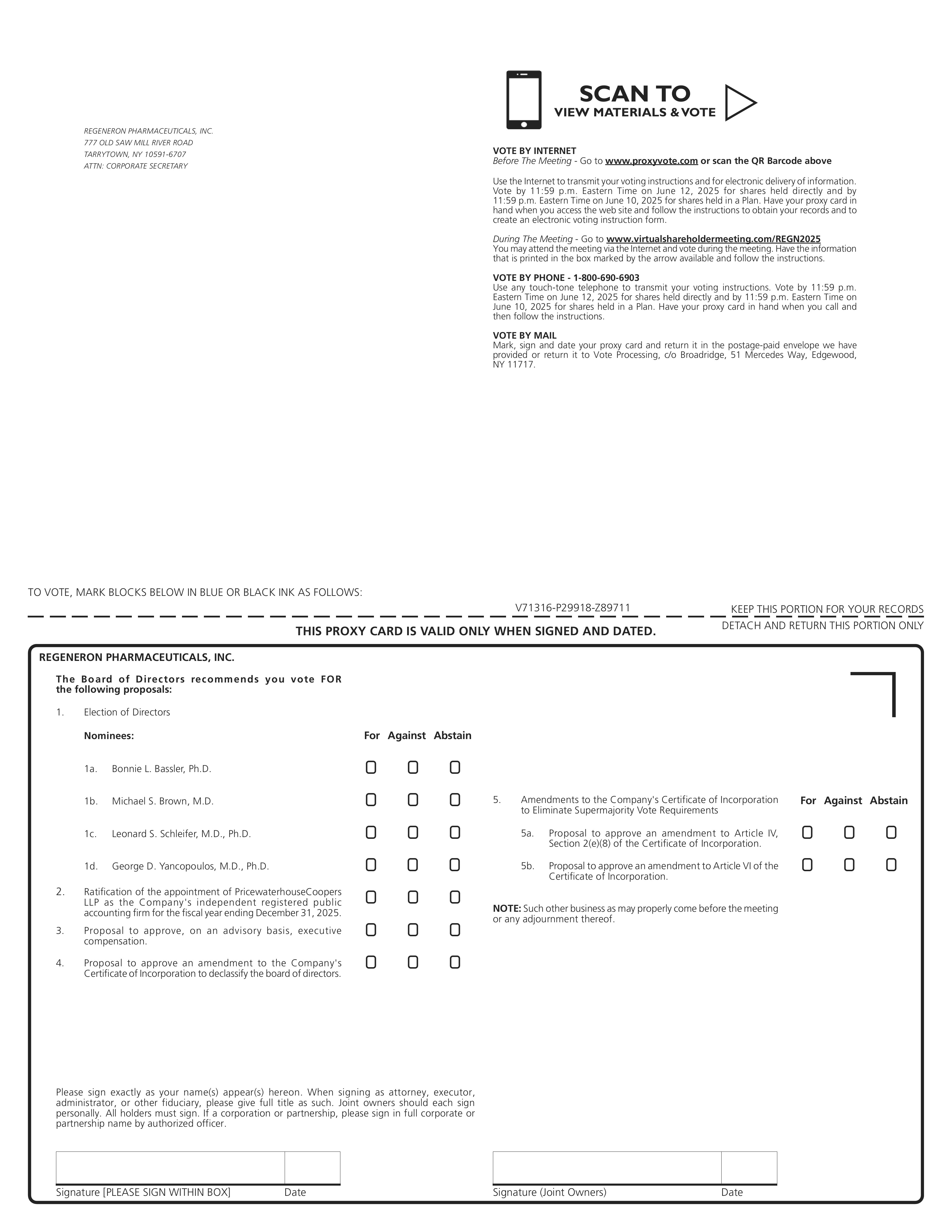 位置 在线于 www.virtualshareholdermeeting.com/REGN2025 |