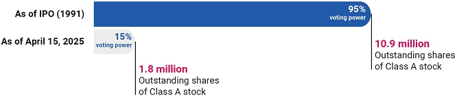 议案5(b):董事选举中至少80%有权投票的各类股本流通股的赞成票。普通股和A类股票持有人作为单一类别一起投票,A类股票持有人有权获得每股十票的投票权。 |