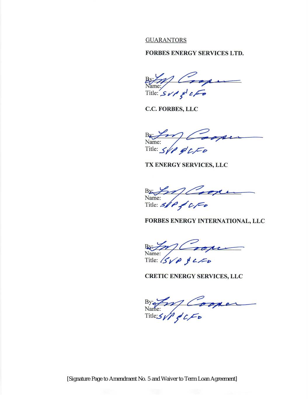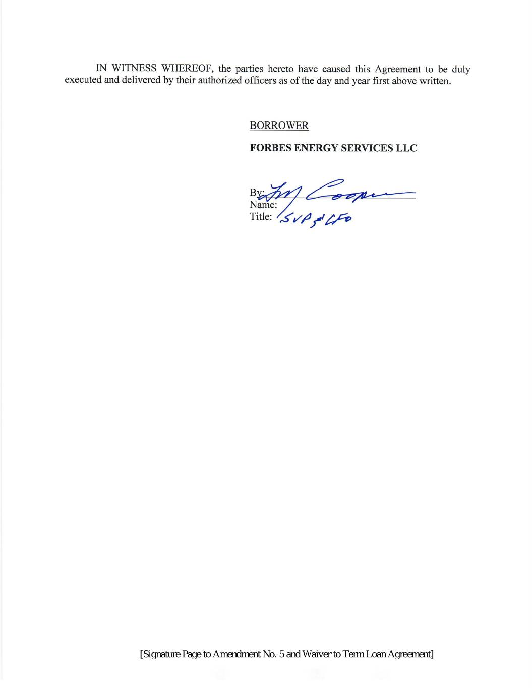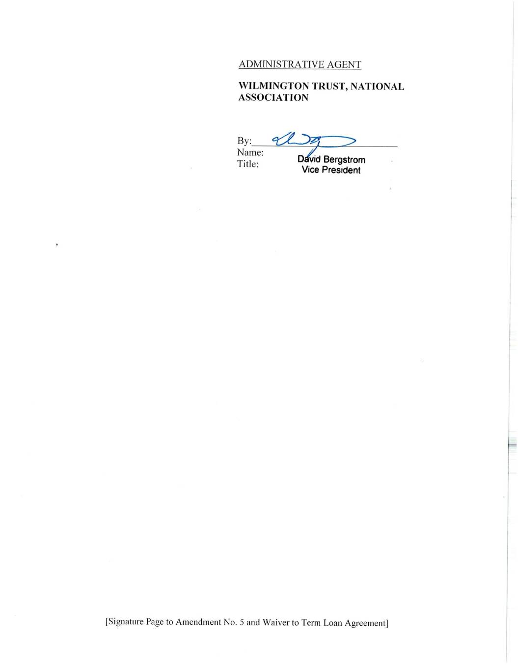 [第5号修正案的签名页和定期贷款协议的豁免]