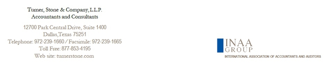 我们的独立公共会计师事务所是Turner Stone & Company,L.L.P.,Dallas,Texas,PCAOB Auditor ID 76。