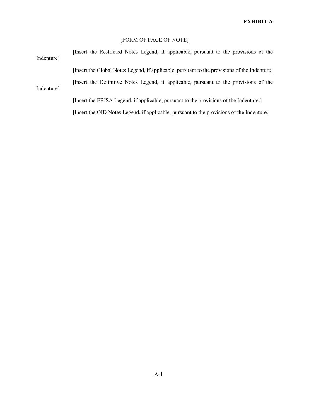 EXHIBIT A A-1 [ Note Face Form ] [根据义齿的规定插入限制性票据图例(如适用)] [根据义齿的规定插入全球票据图例(如适用)] [根据义齿的规定插入最终票据图例(如适用)] [根据义齿的规定插入ERISA图例(如适用)。] [根据义齿的规定插入OID Notes图例(如适用)。]