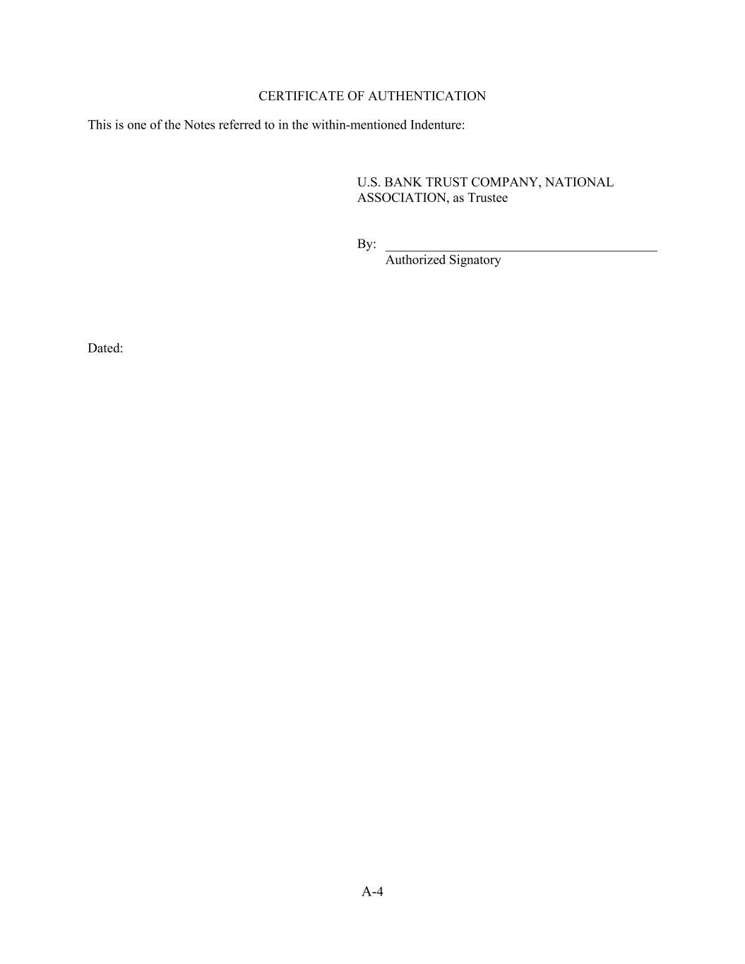 A-4认证证书这是内述契约中提及的票据之一:美国银行信托公司,全国协会,作为受托人:授权签字人日期: