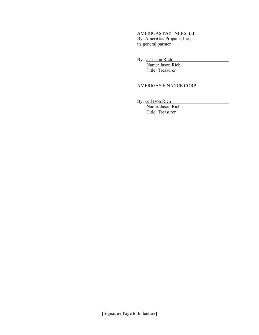[契约签署页] AMERIGAS PARTNERS,L.P. By:AmeriGas Propane,Inc.,its general partner by:/s/Jason Rich Name:Jason Rich Title:Treasurer AMERIGAS FINANCE CORP。作者:/s/Jason Rich姓名:Jason Rich职务:财务主管