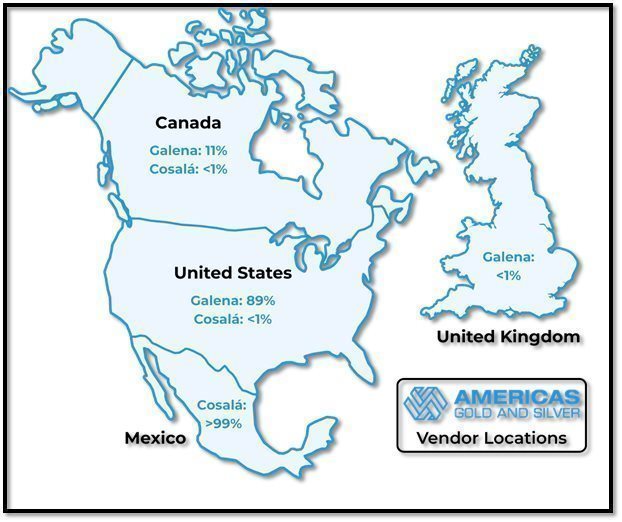 Galena Complex从加拿大、美国和英国的350多家供应商处采购绝大多数的方铅矿采购来自美国(见下图3)。