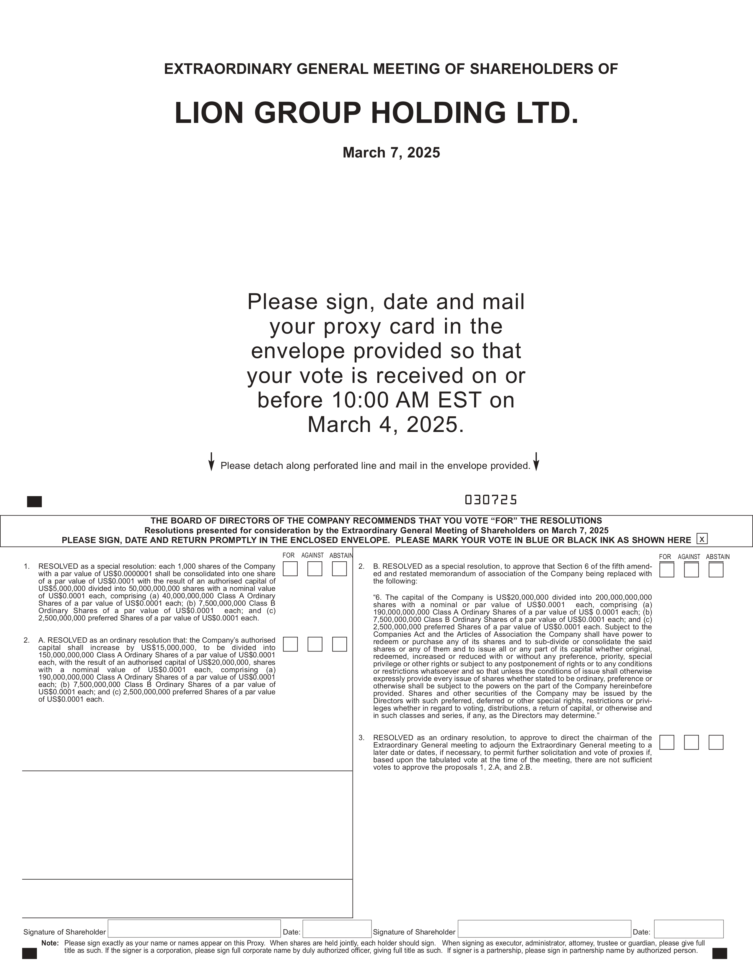 | 日期:2025年1月14日 | 狮子集团控股有限责任公司 | |